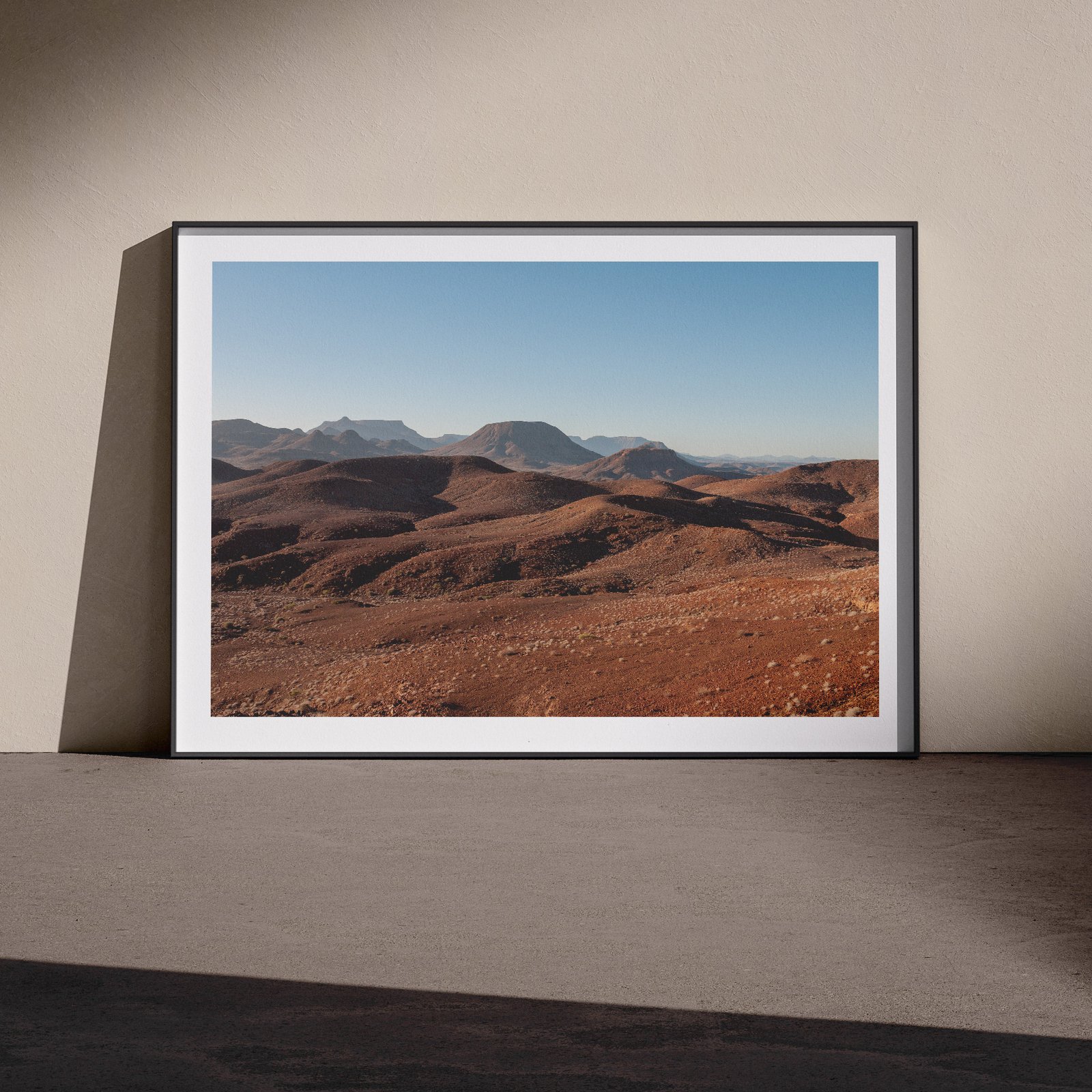 The earthy colour palette and horizontal composition make this Namibia fine art print exceptionally versatile for interior spaces. Whether displayed in a contemporary minimalist setting or a warm, earthy interior scheme, the natural tones complement both neutral and bold decorating choices. The commanding presence of this desert mountain photograph suits larger formats where the subtle gradations of light and texture can be fully appreciated.