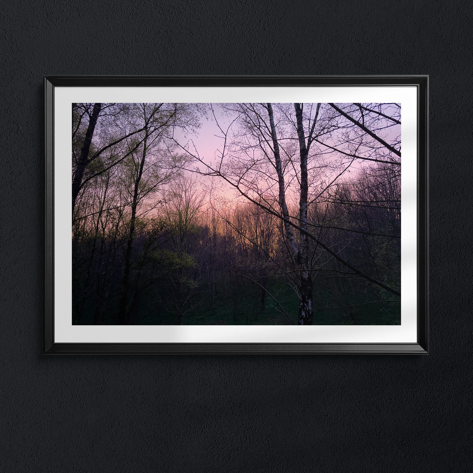 Printed in-house on museum-quality Hahnemühle Photo Rag 308gsm archival paper using UltraChrome pigment inks, this woodland sunset print is guaranteed to retain its delicate colours for generations. Each limited edition print is hand-signed and includes a certificate of authenticity.