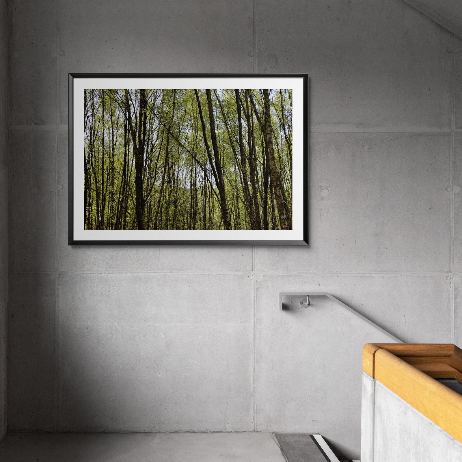 The verdant palette and natural subject make this English birch photograph ideal for bringing the rejuvenating energy of spring into any interior.